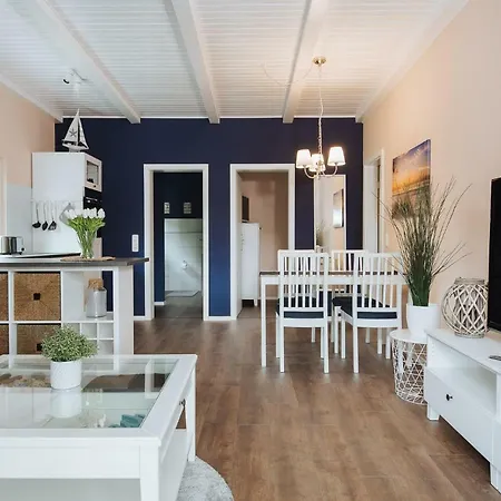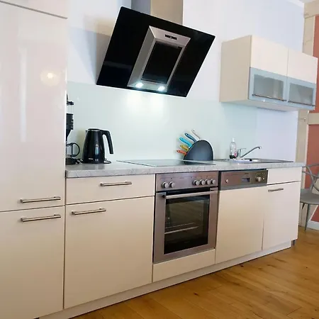 Eine Küchenzeile ist mit einem Herd und einem Geschirrspüler komplett ausgestattet. Das Apartment Warnemünde Die kleine Perle ist in einer Entfernung von nur 10 Gehminuten von der Bushaltestelle Warnemuende Kirchenplatz.
